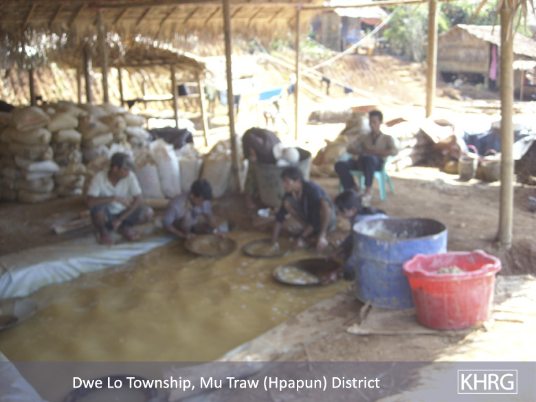 While the gold mining continued to 2009 and 2010, DKBA Lieutenant Chit Thu[12] came and carried out gold mining with many of his soldiers. They mined gold in Meh Kleh, Meh Toh and Baw Paw rivers. At that time, the civilians had to suffer and carry things [for the DKBA]. They [civilians] had to work for the DKBA without resting. Moreover, when they [DKBA] mined gold, civilians' lands and vegetation were damaged but they [DKBA] did not pay compensation.