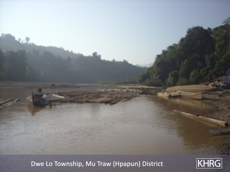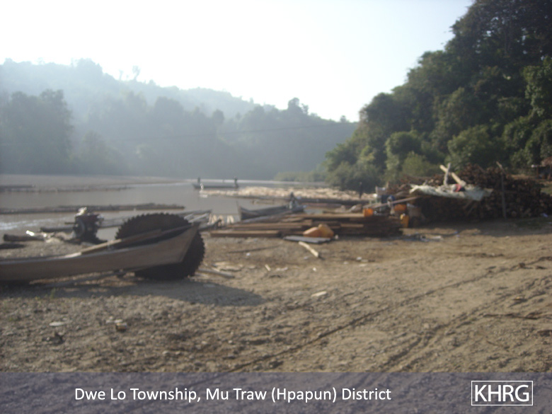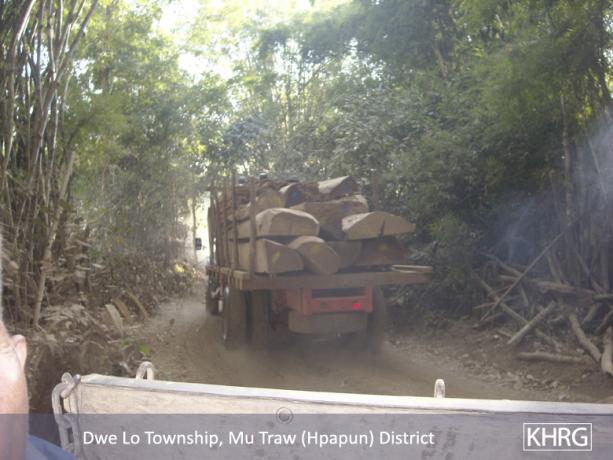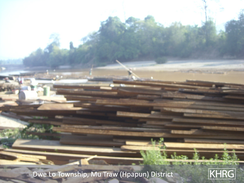 Logging is still ongoing in Dwe Lo Township. Forest administrator Kyaw Hpoh said that headquarter [KNU] and district [leaders] forbid the logging decisively. When I compare what he said and what he did, it does not match. He said logging is forbidden, but when rich men, Maw Ra and Kay Mee Kaw, requested to do logging, he gave them permission to do logging since November 10th 2012. Until now, they continue to log [trees], which are ironwood and teak [trees] in Meh Way village tract, and they said [they are allowed to log the trees because they] are [unclaimed]. They send the logs that they [cut] to Ma Lay Ler and Kwee T'Ma [villages], then they transport [them] with a truck and go to sell [the logs] in the town. This still happens continuously. Some civilians said that the leaders said to develop the forest, but what the leaders said and did do not match. As the proverb says, the villagers say that the leaders are now just "writing by hand and erasing by leg." One villager said, "Is it good to develop the forest or not good? I hope many leaders decide it collectively. If they would develop the forest, they have to forbid it decisively. The logging and sending the logs to the town should not occur anymore."