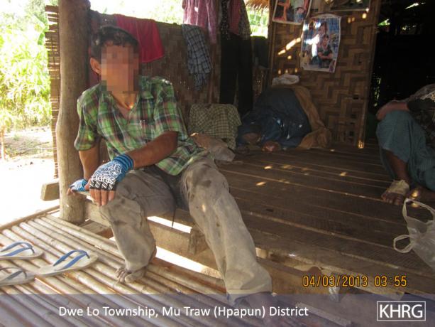 This photo, taken in March 4th 2013 in P---village, K’Ter Tee village tract, Dwe Lo Township, Papun District, shows land owner Saw A---, who described the landmine-related incident that happened in K’Ter Tee village tract. [Photo: KHRG]