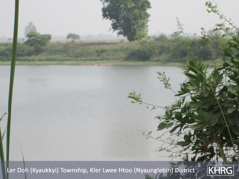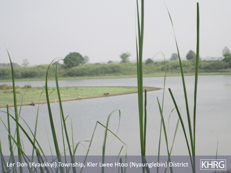 The above photos were taken on March 31st 2013 by a community member who has been trained by KHRG in Nyaunglebin District. Before the USDP came to power in the area, the villagers paid a cheap tax for a license to work on the lakes depicted in the photographs. However, the villagers were no longer allowed to work on these lakes because, after the USDP took control, licenses to use the lakes were only given wealthy businessmen. After the a presidential intervention, the lakes in Kyauk Kyi are now accessible to the villagers at a lower rate, however, the lakes in Shwegyin are still controlled by the wealthy individuals. [Photos: KHRG]