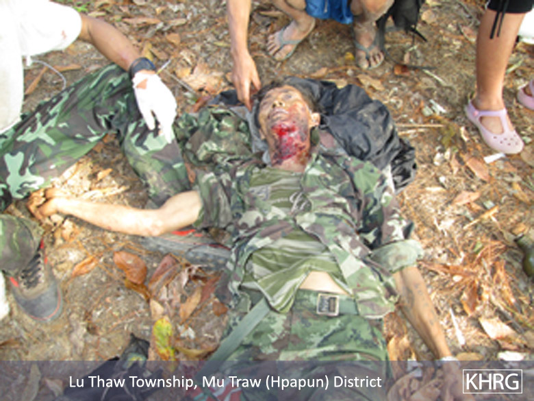 [4] On January 12th 2012, a preliminary ceasefire agreement was signed between the KNU and Burma/Myanmar government in Hpa-an. Negotiations for a longer-term peace plan are still under way. For updates on the peace process, see the KNU Stakeholder webpage on the Myanmar Peace Monitor website. For KHRG's analysis of changes in human rights conditions since the ceasefire, see Truce or Transition? Trends in human rights abuse and local response since the 2012 ceasefire, KHRG, May 2014.