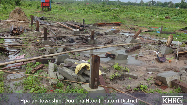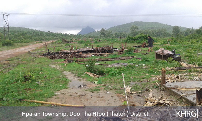 For more information on this incident see: “Forced relocation and destruction of villagers’ shelters by Burma/Myanmar government officials and police in Hpa-an Township, Thaton District, June 2015,” KHRG, August 2015.
