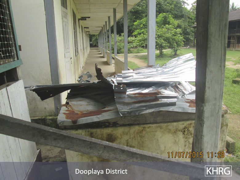 On July 7th 2015, a primary school building in Kawkareik Town was hit and damaged by a grenade reported to have been fired by two DKBA soldiers. However, no students or teachers were harmed as the incident took place at 7 am before the school had opened for the day.[1]