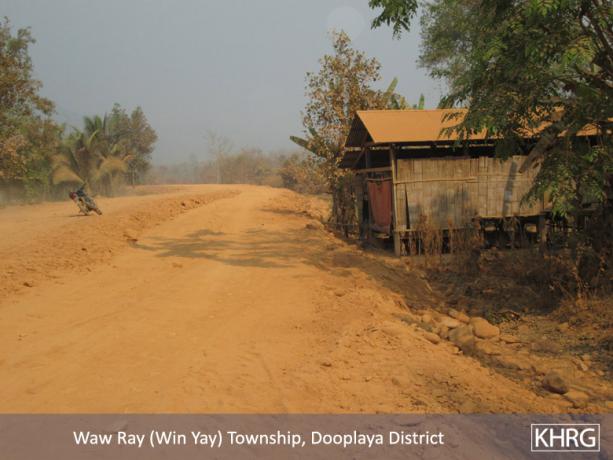 According to Saw G---, there are livelihood problems and water problems. There are development activities, but the Karen civilians still have to get water from the river to drink. Every leader knows about these things. According to a villager called Saw G---, there is a rising population, [the number of] houses are increasing, roads are being developed, and business channels are opening up, but they still have to consume drinking water from the river. He also mentioned that if [villagers] do not have water it is going to be difficult. In the past the village used to be small but now there are Mon, Burmese and Karen people. For the people who have money they can handle it [the road construction] but [the villager] said, “I wish the government knew that there are more people who are facing problems.” The villages are situated in Win Yay Township, Dooplaya District along the road that connects Than Pyu Zayat and Ba Ya Thon Hsu. They are H--- [village], E---, I--- and there are also some other villages that are affected [by road construction].