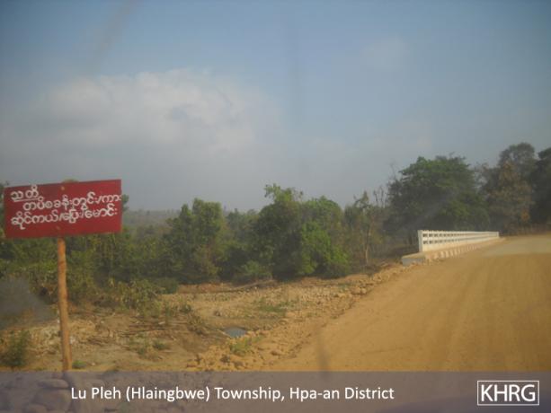There was only one town in Lu Pleh Township, named Lu Pleh Town by Hpa-an District [Burma/Myanmar government name: Hlaingbwe Town], but after KNU and Thein Sein’s government signed the [2012 preliminary] ceasefire[11], they [Burma/Myanmar government] established a new town named Klaw K’Tee Town [Burma/Myanmar government name: Shan Ywa Thint Town]. They also constructed a new vehicle road between Lu Pleh Town and Klaw K’Tee Town, and repaired the road from Klaw K’Tee Town to the [Thai-Burma] border, which is where Meh T’Ree and Meh T’Waw villages are. When the road was being constructed, it damaged some of the villagers’ farms’ water channels; however, villagers asked the road construction company to repair the farms’ water channels, and the company agreed and repaired them for them, so the villagers did not complain about the damage. They finished constructing all bridges in these areas [where a vehicle road is being constructed] in 2016. They started laying stones to construct the road to be travelable in both summer and raining seasons.