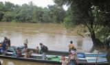 The photos above were taken by a KHRG community member on October 12th 2015 at B--- village’s boat’s port in Kyaw Pah village tract, Bu Tho Township, Hpapun District. The photos show how B--- villagers went to the Yuzalin River bank carrying their luggage and children while they were going to Myaing Gyi Ngu Town by motorboat to evade the Karen National Liberation Army [KNLA]’s recruitment.[3] On October 10th 2015, the KNLA’s Company #4 Company Commander Hsa Yoo went to the village and held a meeting with villagers regarding the recruitment. In the meeting he explained to villagers about the detailed information and the purpose of the KNLA recruitment. Then, he told villagers who remained in the village not to go to Myaing Gyi Ngu Town anymore and also to inform others who had fled to return. He told villagers, “We [KNLA] are not recruiting soldiers anymore. So, do not flee like this anymore. Live as you did before. Ask and inform villagers who already fled to return and we will not do anything to them. They can live as they did before.” Even though Commander Hsa Yoo told villagers like this it seems that villagers did not inform other villagers or ask others to return to their homes. Moreover, more villagers were still fleeing: these photos were taken two days later after Commander Hsa Yoo held a meeting with villagers. The photos depict villagers continuing to resettle to Myaing Gyi Ngu Town. Some of them, even though they have small children, were also fleeing. According to the KHRG community member, there might also have been some rumours from other groups that persuaded or scared the villagers in some way to flee, causing this ongoing problem. [Photos: KHRG]