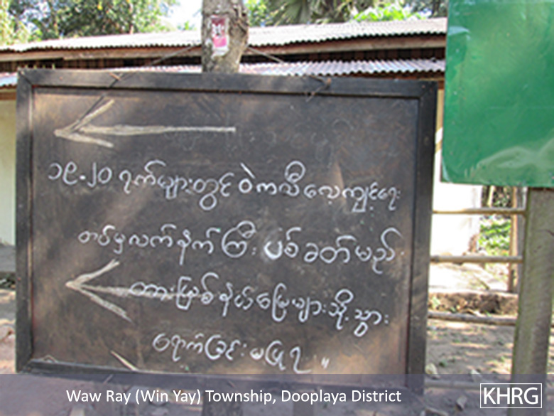 [26] This information was taken from “Dooplaya Situation Update: Kyainseikgyi Township, December 2014 to February 2015” KHRG, June 2015.