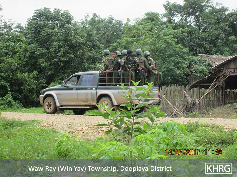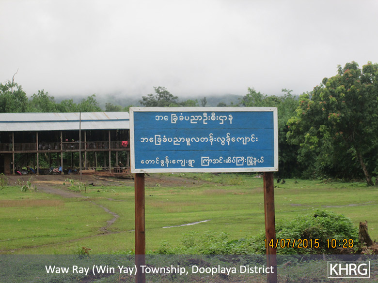 This Situation Update describes events happening in Win Yay Township, Dooplaya District between June 22nd, 2015 and July 18th, 2015, including the relationship between Tatmadaw and civilians, the relationship between Karen National Liberation Army [KNLA] and civilians, education, healthcare, community situation, the relationship between Tatmadaw and Karen National Liberation Army and civilians’ business situation.