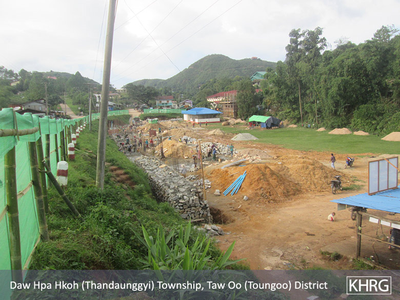 The road was constructed roughly in Kywe Phyu Taung village, Thandaunggyi Township. So people could not use cars and motorbikes to travel on that road. Also, the road was constructed in Taw Phya Gyi village, Thandaunggyi Township [and] it damaged local villagers’ lands. However, local villagers did not get any compensation. Besides, only half of the road was finished and people could not travel by car on that road because the road is very steep.