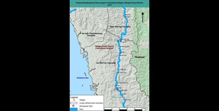 This News Bulletin describes the details of a proposed hydropower dam project in Ler Muh Lah Township, Tanintharyi Region, Mergui-Tavoy District. The dam will be constructed on the Tanintharyi River at A--- pool which lies 2.7 kilometres away from Moh Roh village. Villagers from surrounding villages do not agree with project and protested during a consultation meeting in February 2017.[1] The assessment for the hydropower dam project was conducted by Nippon Koei Company and the Italian-Thai Development Company.