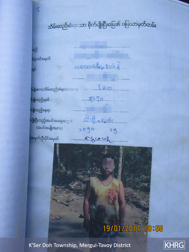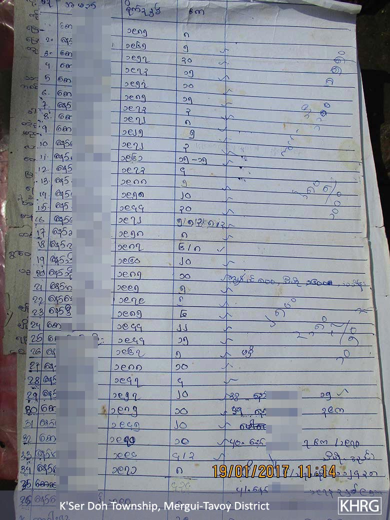 The following Situation Update was received by KHRG in November 2017. It was written by a community member in Mergui-Tavoy District who has been trained by KHRG to monitor human rights conditions. It is presented below translated exactly as originally written, save for minor edits for clarity and security.[1] This report was received along with other information from Mergui-Tavoy District, including one other situation update and 55 photographs.[2]