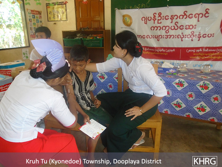 • Both Karen National Union (KNU) and Burma/Myanmar government take responsibility in building healthcare facilities and offered vaccines to the villagers in both Kyainseikgyi and Kyonedoe townships.