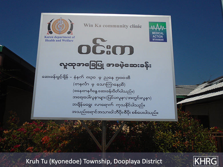Similarly, there is also improvement in the healthcare situation in Kyonedoe Township, Dooplaya District. Healthcare facilities were built not only by Burma/Myanmar government but also Karen National Union [KNU]’s health department, Karen Department of Health and Welfare [KDHW]. In November and December 2017 and January 2018, the health workers from Burma/Myanmar government offered Japanese encephalitis vaccines to the children in the villages in Kyonedoe Township areas. Similarly, [prior to the reporting period] a KNU clinic was also built in Wa Ka village, Wa Ka village tract in Kyonedoe Township by KDHW which was built at the end of 2016 and opened in March 2017.[5]