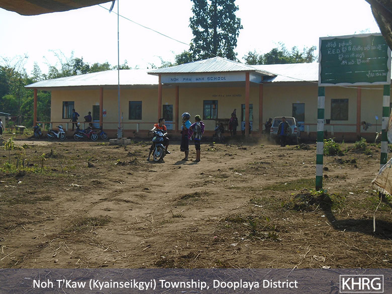 In the information presented above, the human rights issues covered are education, health, development and military [Tatmadaw] movement, as documented and researched in Noh T’Kaw and Kyonedoe townships, Dooplaya District.