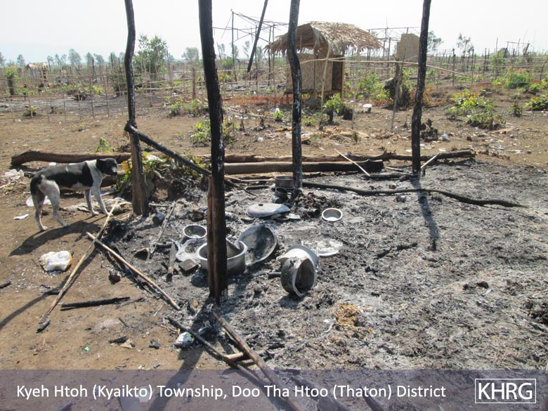 [45] These photos are taken from previous published KHRG news bulletin, “Trespassing villagers’ houses destroyed and burnt down in Kyaikto Township, Thaton District, February 2016”, KHRG, July 2016.