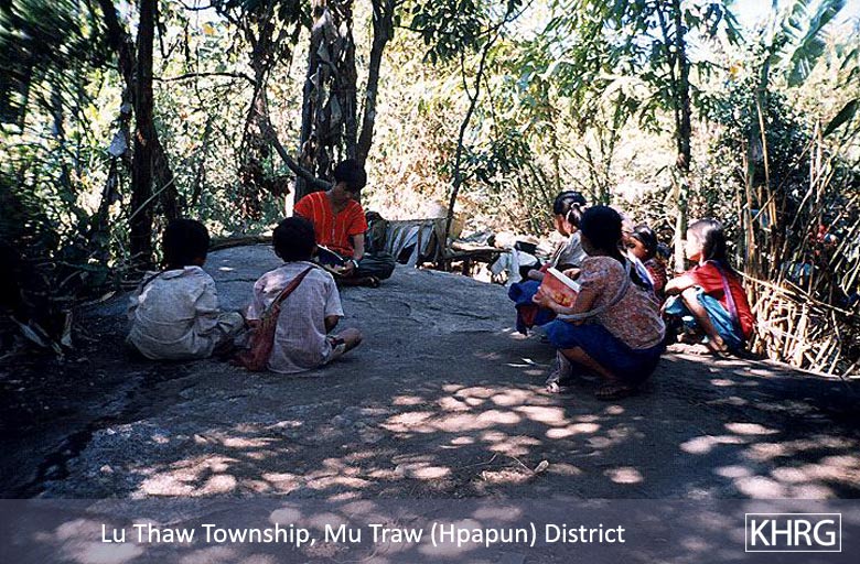 According to KHRG reports, forced assimilation policies implemented by the Myanmar government has resulted in many KNU administered schools being forcibly closed or destroyed and Karen language, literature, and traditions were banned from classrooms, particularly prior to the 2012 ceasefire. During this time, villagers struggled to keep schools open unless they hired Myanmar government-sanctioned teachers as officers were suspicious of any service which was not directly controlled by the Tatmadaw. Throughout southeast Myanmar, many villages used to have primary schools supported by the KNU or schools they set up and ran entirely by themselves, but these were systematically forced to shut down by the Tatmadaw. In order to open their schools, villages were required to obtain the regime’s approval to run a school, to pay all the costs and salary of a Myanmar government-trained teacher, and to teach the official Myanmar government curriculum.[60] According to one villager from Hpa-an District: