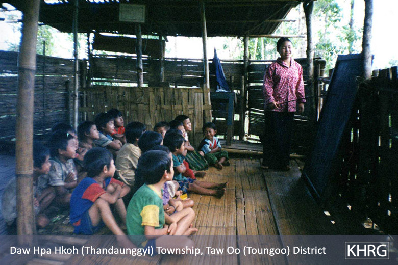 [57] “Insomevillages, somepeoplesaidthatBurmesefemale teachersbrutallybeat thechildren[students]if theycouldnotfollow thelessons.” “Dooplaya Situation Update: Win Yay Township, June to July 2015,” KHRG, March 2017.