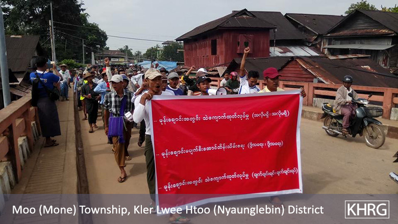 - On February 25th 2018, Tatmadaw and Burma/Myanmar government authorities stopped villagers from logging wood in Hsaw Mee Loo village, Mone Township. Local community members had been given permission to use wood from the forest to build their houses by the Karen National Union (KNU) authorities.