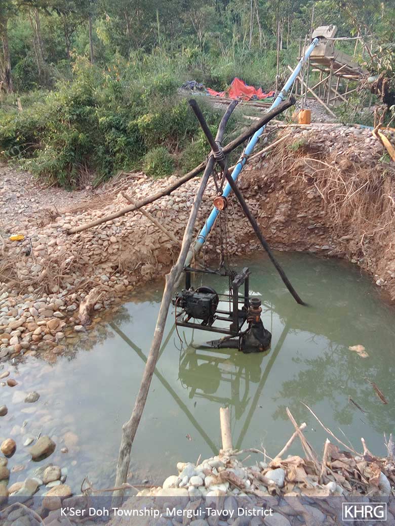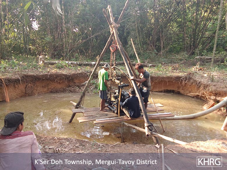 Mining is widespread in Mergui-Tavoy District. The Nay Htet Hsu Company is mining an area of 9,331 acres. The Shole Dinki Company is mining an area of 6,000 acres. [In addition to this, a huge expanse of land in the same area was designated as a reserved forest by the Burma/Myanmar government]. The reserved forest covers an area of 25,773 acres. [Because the mining operations and the newly designated reserved forest, the local community has less access to land for agriculture and grazing purposes]. According to the village head of Maw Nee, this issue was already reported this to the chief liaison of Mergui-Tavoy District.