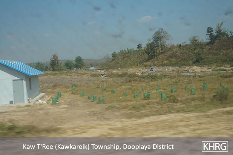 This photo was taken on February 7th 2018 in Taw Naw Mu Htaw, Kawkareik Township, Dooplaya District. It shows the area designated for the construction of housing for refugees. The construction is ongoing. Refugees will be repatriated [to this area] once the risk of civil conflict is reduced. [Photo: KHRG]