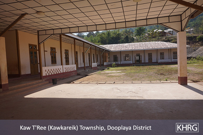 This photo was taken on February 7th 2018 in Hsoh K’Lee village, Kawkareik Township, Dooplaya District. It shows the village school that was built by the Burma/Myanmar government. This school has the capacity to educate a thousand students. At present, only 80 children are attending the school. [Photo: KHRG]
