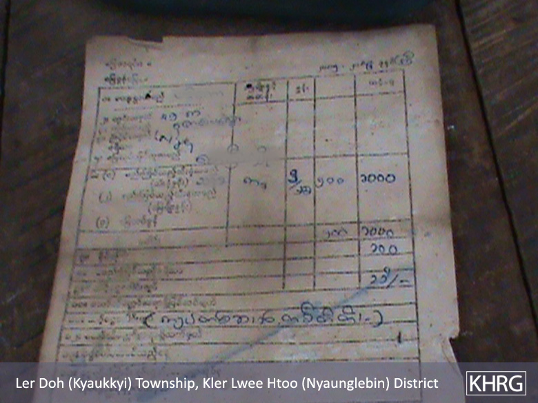 The following Situation Update was received by KHRG in February 2018. It was written by a community member in Nyaunglebin District who has been trained by KHRG to monitor human rights conditions. It is presented below translated exactly as originally written, save for minor edits for clarity and security.[1] This report was received along with other information from Nyaunglebin District, including 7 interviews, 95 photographs and 28 video clips.[2]