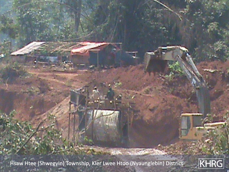 Consequently, the mining operations damaged the local environment and the farmlands of the local community. Gold mining and logging are common in many areas of Shwegyin Township.[6]