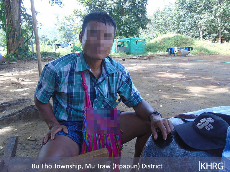 On November 17th 2017, a KHRG researcher collected information on an instance of forced portering and extortion in Hpapun District that happened in Htee Th’Daw Hta and Meh P’Lee village tracts, Bu Tho Township and Lay Poh Hta village tract, Dwe Lo Township. On October 15th 2017, tension between the BGF and the Democratic Karen Buddhist Army (DKBA) splinter group occurred in Ko La Wa Loo hill, Meh Th’Waw village, Hlaingbwe Township, Hpa-an District [near the boundary line between Hpa-an and Hpapun Districts]. Therefore, the BGF Battalion #1014 based in Hpapun District started forcing local people to serve as porters near the front line. Villagers were supposed to carry loads, weapons and rations for BGF soldiers. This order came from the Battalion Commander Lt. Colonel Saw Maung Chit and the officer in charge Saw Tin Win. Saw S--- said that the BGF Battalion #1014 ordered ten people from each village in Bu Tho and Dwe Lo townships to serve as porters. When villagers refused to serve as porters on the front line, the BGF ordered each village that did not provide forced porters to give them 180,000 kyat (US $ 112) instead.[3] Local villagers did not want to be forced porters for the BGF nor did they want to pay money to the BGF because of the security risks and the financial burden it posed. However, the BGF commander told them that they have to pick one of the two options. The threats of forced labour and repeated extortions are causing perpetual fear and insecurity for civilian populations. For this community, 180,000 kyat (US $ 112) represented a large sum: they would need to sell off a pig or a cow that they have been raising for years, upon which their livelihoods depended. To respond to the extortion of BGF Battalion #1014, local community members collected money by going house to house. K--- and H--- villages, in Htee Th’Daw Hta village tract, Bu Tho Township, were ordered to send one porter each. To avoid serving as forced porters, the local communities paid 180,000 kyat because they did not want to serve as porters for the BGF. Similarly, the BGF ordered Z--- and A--- villages to send two people from each village. When local villagers were reluctant to go with the BGF soldiers, they also chose to pay 180,000 kyat (US $ 112). In this case, most local people refused to serve as forced porters for the BGF because of the risk of going to the frontline. Even though they faced financial burdens, they tried to provide the full amount requested by the BGF. Instances of forced portering are still prevalent in Southeast Myanmar, despite the signature of the Nationwide Ceasefire Agreement (NCA), which prohibits “slavery and forced labor”.[4] According to KHRG analysis, the BGF, Tatmadaw, and DKBA (splinter) were responsible for forced labour requests during the peace process.[5] Throughout Southeast Myanmar, local communities hoped that the NCA would not only end the violence, but also put an end to the human rights violations perpetrated on civilian populations. |