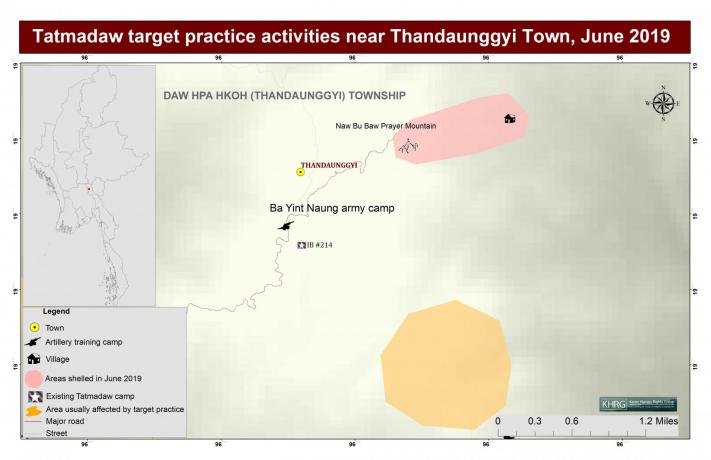 On June 27th 2019, three mortar shells fired during a Tatmadaw artillery exercise fell near a village and a KNLA army camp on the Naw Bu Baw Mountain, [1] Thandaunggyi Township. The Tatmadaw has also been strengthening its presence in Toungoo district after the signing of the Nationwide Ceasefire Agreement (NCA), [2] which raises concern among local civilians. [3]