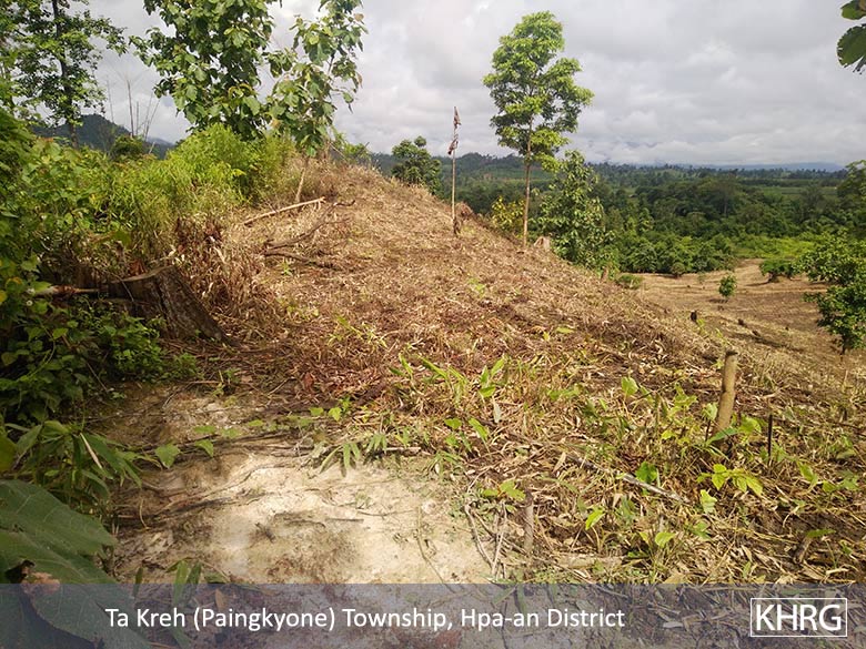 The September 2018 amendments to the VFV Law only gave six months to users of vacant, fallow or virgin land to apply for and obtain a 30-year land use permit. In addition to this short registration deadline, people in remote areas of Southeast Myanmar often do not have easy access to land administration services, are unaware of the provisions of the VFV Law or simply lack the necessary Burmese language skills to apply for a permit. Thus, the whole process did not give local ethnic communities a fair opportunity to register their customary lands in time. The IDPs and refugees who could not return to their area of origin due to security concerns or landmine contamination were also not able to take the necessary steps to protect their lands. KHRG and other sources documented that individuals and business actors took advantage of the VFV Law and registered customary lands belonging to IDPs or refugees in their name.[18]