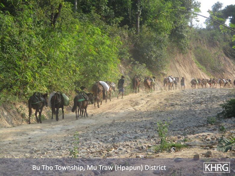 The Tatmadaw is currently constructing a road between Kler La army camp (Baw G’Lee) to Yay Tho Lay in Lay Tho Kyi village tract, Thandaunggyi Township, Toungoo District. It has further plans to continue road constructions to connect Yay Tho Lay to Maw Chee in Kayah State and Has Law Kyo army camp in Hpapun District. However, the KNU authorities did not give their consent due to the projects’ foreseen damage on villagers’ lands and plantations. Despite several warnings from KNU authorities, the Tatmadaw proceeded with road construction works from Baw G’Lee to Yay Tho Lay.[9]