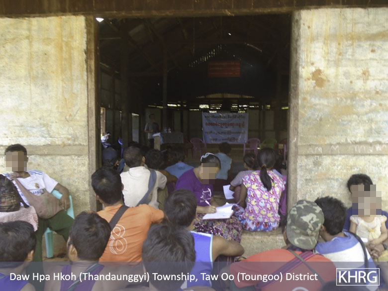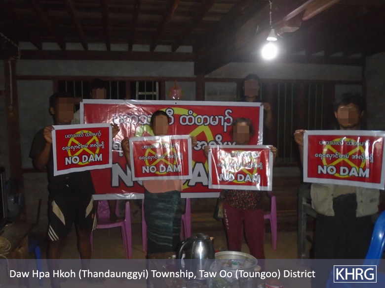 Over the reporting period, the Myanmar government and the Democratic Karen Benevolent Army (DKBA)[2] tried to implement hydropower projects in Toungoo and Dooplaya districts, respectively, without the free, prior and informed consent (FPIC) of the local populations. If completed, these two projects could have devastating impacts for the livelihoods and way of life of the affected villagers, and result in forced relocation and loss of lands. The DKBA project in Dooplaya District has been temporarily suspended as a result of successful village agency strategies, but over 50 villages still face an imminent threat from the proposed Thauk Yay Khat Dam (I) project in Toungoo District.