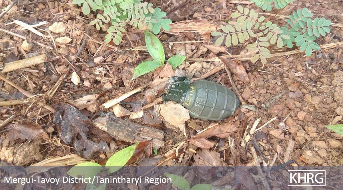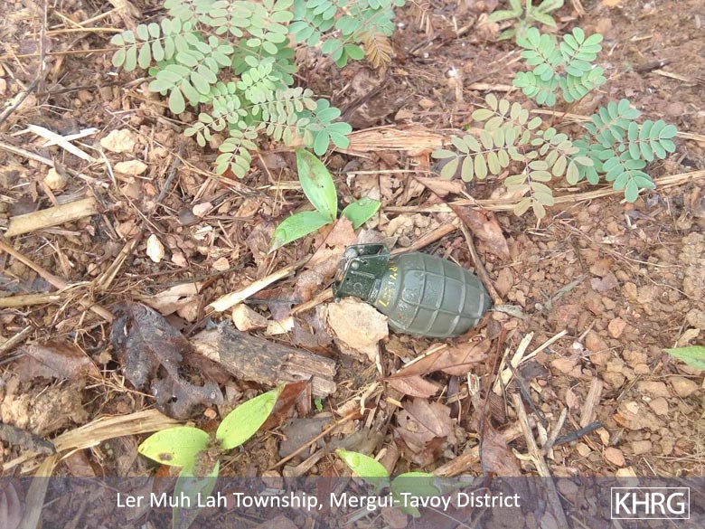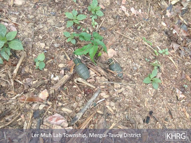 These photos were taken in January 2019 in Ler Mu Lah Township, Mergui-Tavoy District. They show the unexploded hand grenades left by the Tatmadaw on local villagers’ lands. [Photos: KHRG]