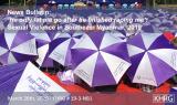This photo was taken on November 25th 2019 in Dwe Lo Township, Mu Traw (Hpapun) District. It shows hundreds of villagers attending an event for the 16 Days of Activism against Gender-based Violence campaign organised by the Karen Women's Organisation (KWO). The slogans written on the umbrellas that were distributed to the villagers read: "Stop sexual violence now! Take action and be responsible if you see violence against women. Use your power to protect!" [Photo: KHRG]