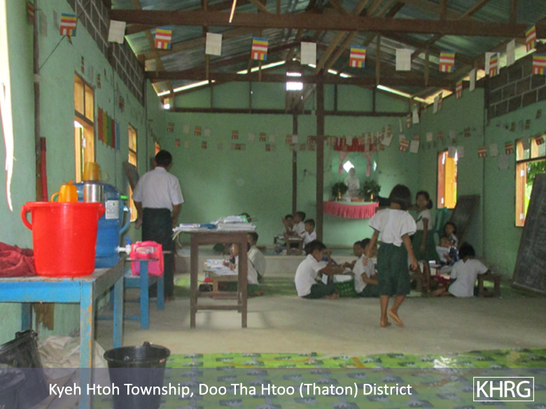 This Situation Update describes events that occurred in Tha Htoo (Thaton) and Kyeh Htoh (Kyaikto) townships, Doo Tha Htoo (Thaton) District between February and July 2019. In Tha Htoo Township, Tatmadaw soldiers trespassed into areas controlled by the Karen National Union (KNU)[1] in April 2019, raising security concerns among local villagers. In Kyeh Htoh Township, nine victims of land confiscation by the Super One Company are still trying to get their lands back in Chaw Pya [Chaung Pyant] village tract. Villagers from Chaw Thoo Hkee village tract also reported a case of land confiscation by the Myanmar Innwa Thone Company; and are now worried that its activities might negatively impact their community. In Waw Kay village tract, one of the schools cannot accommodate all the children. As a result, some of them have to study at the monastery.[2]