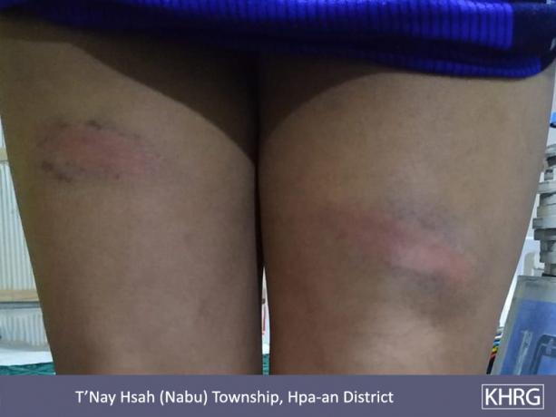 This photo was taken on February 28th 2020 in W--- village, T’Nay Hsah Township, Hpa-an District. It shows the injuries sustained by the interviewee after he was beaten by BGF soldiers. [Photo: Villager]