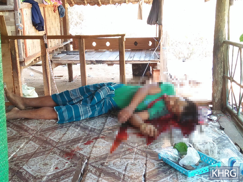This photo was taken on December 15th 2020 in A--- village, B--- village tract, Kruh Tuh Township, Dooplaya District. It shows the body of C---, a 24-year-old Mon villager who was shot dead by Win Thu, a Mon DKBA soldier. [Photo: local villager]