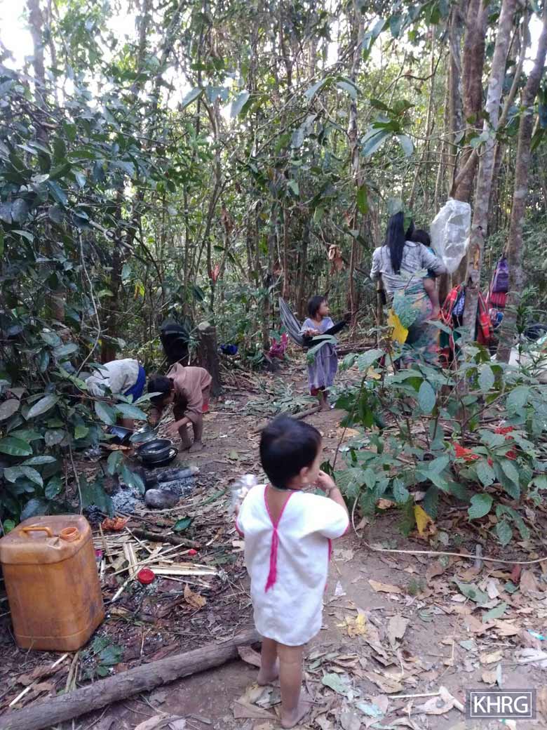 These photos were taken on January 11th 2021 in Kheh Der village tract, Ler Doh Township, Kler Lwee Htoo District. They show villagers from L--- and V--- villages in a displacement site in the forest. [Photos: Villagers]