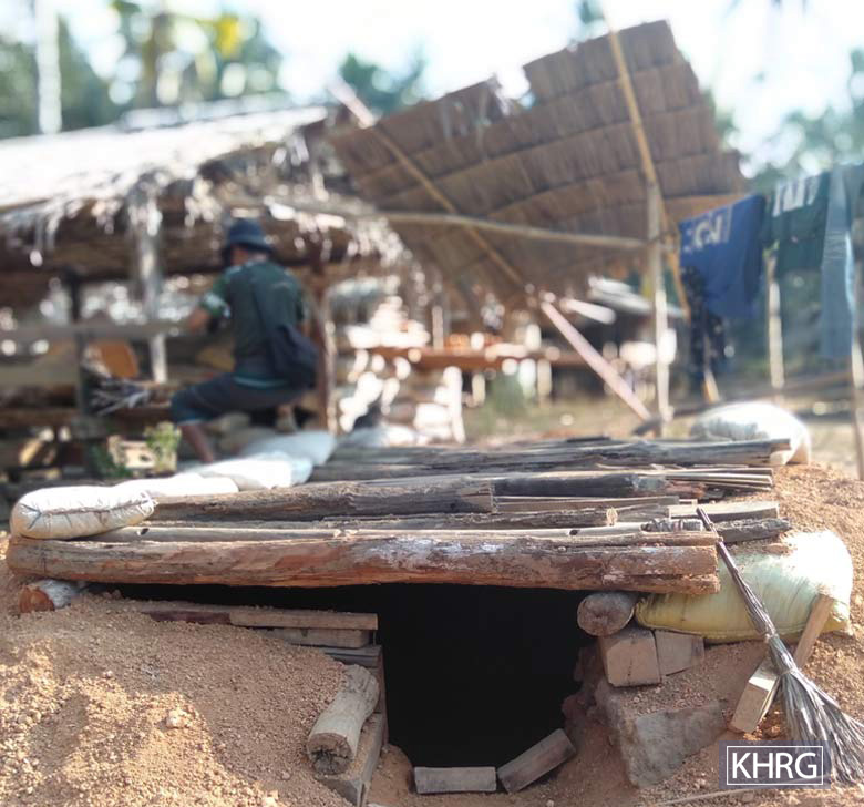 These photos were taken on January 9th 2021 in K--- village, Hkoo Thoo Hta village tract, Dwe Lo Township, Mu Traw District. They show some of the makeshift bunkers villagers built to protect themselves from skirmishes and shelling. Some households already had a bunker before the last round of displacement; and new ones were built upon the return of the displaced villagers. [Photos: KHRG]