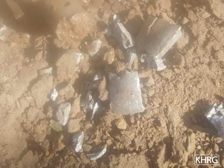 This photo was taken on January 19th 2021 in P--- village, Kheh Der village tract, Ler Doh Township, Kler Lwee Htoo District. It shows an exploded mortar shell. This particular shell was fired by Tatmadaw LIB #603 led by Battalion Commander Maung Maung Soe. [Photo: Villager]