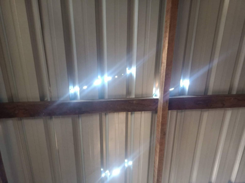 These photos were taken on June 3rd 2021, in U--- village, Kaw T’Ree Township, Dooplaya District. They show the damage to villagers’ houses that was caused by the firing of mortars and bullets. [Photos: local villager]