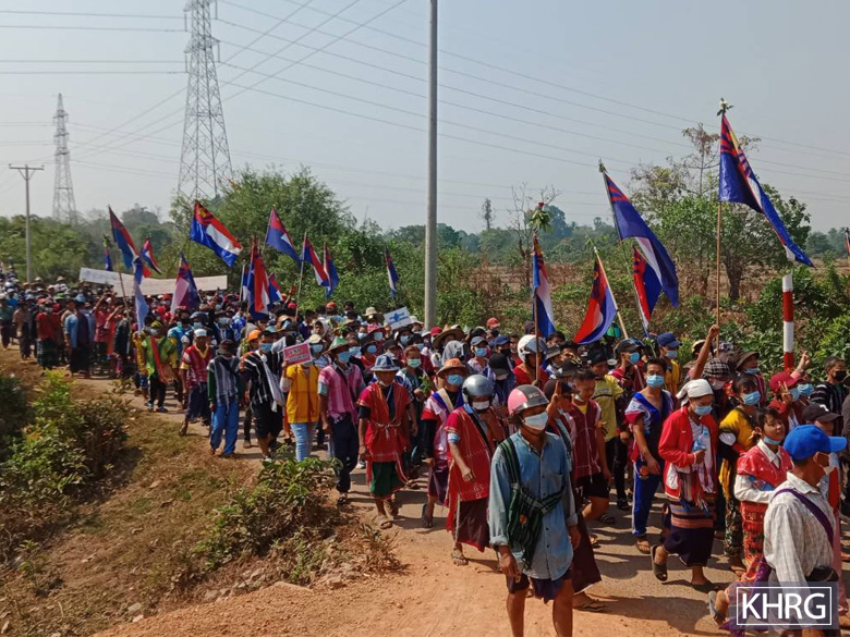 Protests also occurred in K’Moh Thway area in Leh Doh Soh Township, Way Ta Eh and Paw Hkloh areas in K’Ser Doh Township, and P’law area in Leh Muh Lah Township.[28] However, on February 21st, Mergui-Tavoy District KNU leaders met with local KNU leaders in Kleh Muh Htee area, K’Ser Doh Township and advised Karen individuals not to join the protests, leading many to refuse to join the protests when asked to do so by protest organisers in their village. However, some civilians did still continue to join in the protests.[29]