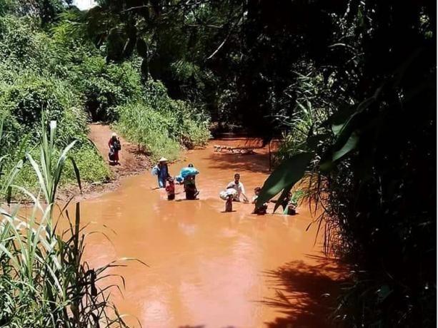 People in Ei Tu Hta IDP camp, located 21.5 kilometres from where the airstrikes had occurred on March 28th, heard rumours about an SAC plan to carry out airstrikes against the camp.[51] Therefore, over 3,000 persons living in Ei Tu Hta and surrounding villages, including women, children, elders and persons with disabilities, fled the area and crossed the Salween River (which marks the border between Thailand and Myanmar) by boat later that day.[52] Some of the IDPs could bring their belongings with them, but others could not bring anything.