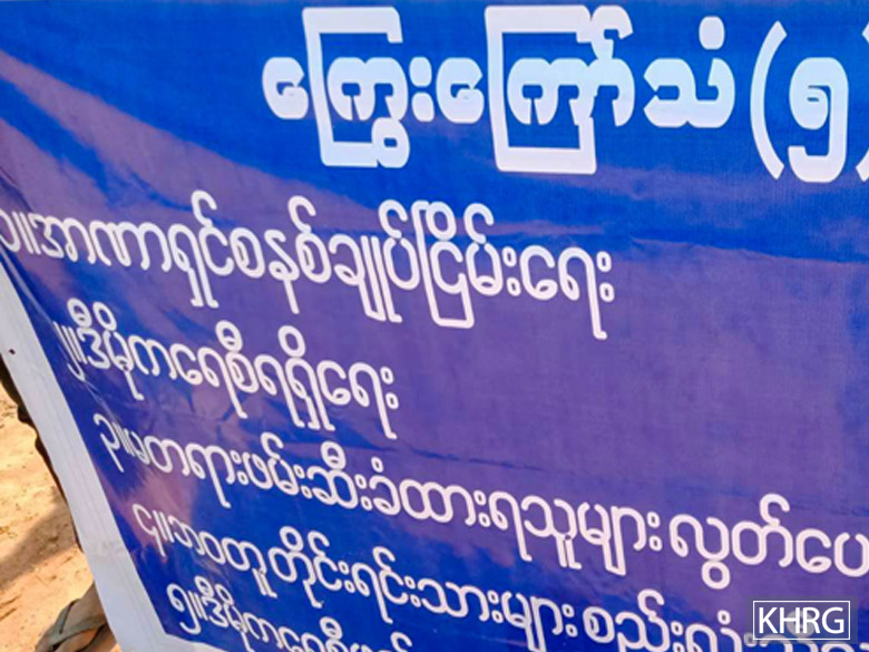 This photo was taken on March 9th 2021 on the Asia Highway near Kawkareik Town, Dooplaya District. It shows the demands villagers made in protesting against the military regime: 1. An end to dictatorship; 2. Democracy; 3. Release of those who were arrested unfairly; 4. Unity among ethnic groups; 5. Federal democratic union. [Photo: KHRG]