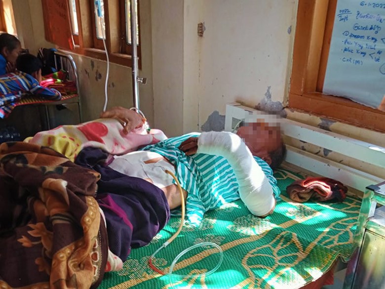 This photo was taken on January 7th 2022 in Bilin Township, Doo Tha Htoo District. The photo shows an injured villager, Saw I---, who is hospitalized in the local community hospital. [Photo: Villager]
