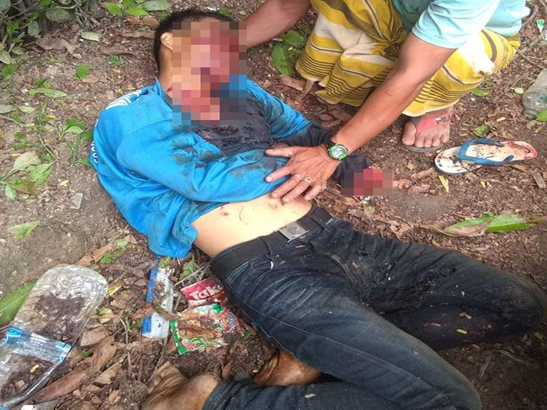 He still had shortness of breath [was still breathing] when people saw him. One of his friends found him injured and called for help from nearby [KNLA] soldiers. When they [the soldiers] came to check, he had already passed away.