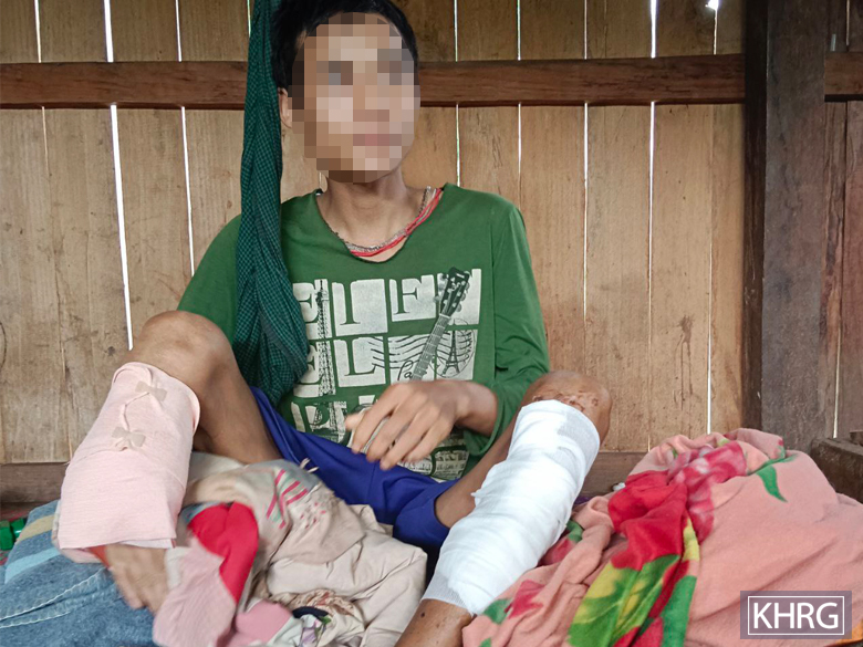 After their return, villagers carried the victim in a hammock on foot [for half an hour] to A--- clinic, located in Naw Yoh Hta village tract, Lu Thaw Township for treatment. The victim arrived at the clinic at about 4:00 pm. On the morning of June 22nd 2022, the doctors at the hospital amputated his right leg below his knee. Due to inadequate medical supplies and medicine at the clinic, the victim was required to buy medicine himself, which cost over 2,000 baht [USD 60.77].[5] During the operation, the victim needed three to four bags of blood transfusion. His friends donated the blood that was needed for the operation and provided some financial support. At the hospital, the healthcare workers were only able to remove the landmine fragments stuck in his left leg later [due to insufficient medical supplies]. Saw U--- stayed at the hospital for about five months, from June 21st to November 2022. During this time, his brother, E---, looked after him. [He was provided a prosthetic leg to help him walk.] [As of December 2022], he is displaced in the forest along with other villagers due to ongoing fighting between armed groups, and did not fully recover yet.