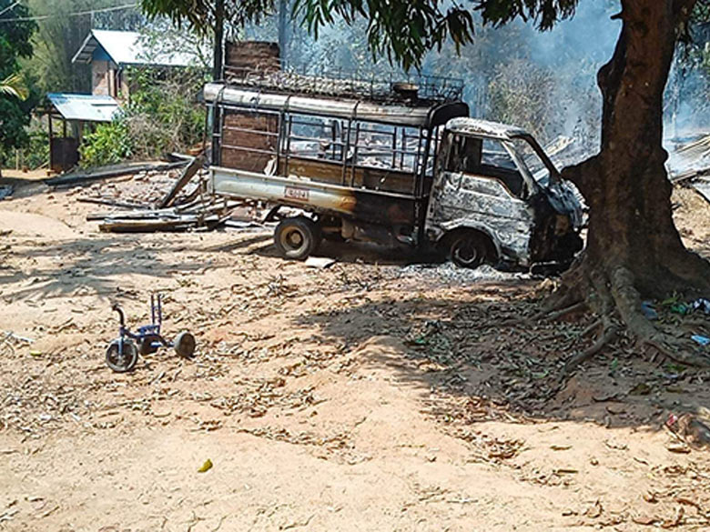 On March 4th 2023, at 11:30 am, fighting broke out between the Burma Army and Thandaung PDF in Section #2. Four Burma [Army] soldiers died in the fighting and some were injured, including Battalion Commander Hein Zan Htun. Some Thandaung PDF members were also injured. Afterwards, the Burma Army burned down six civilian houses near the fighting place, as PDF members had been secretly hiding in the houses before the attack.