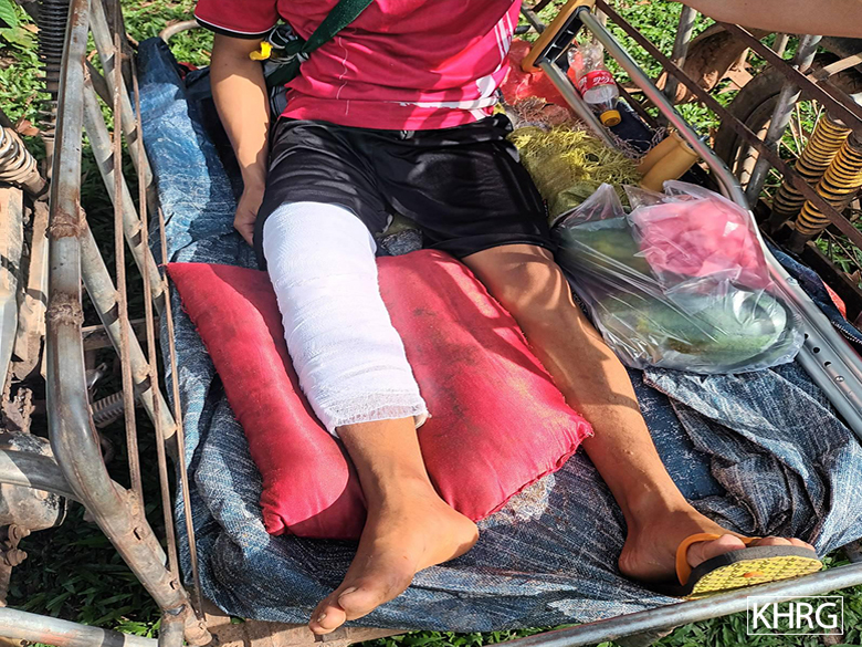 Saw B---’s injuries have recovered slightly, but he is still needing to go to the F--- clinic Kru Tu Township once a week for his wound to be treated. From the shelling, the victim's house and a two-wheeled tractor both sustained minor damages.