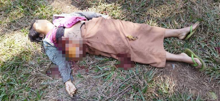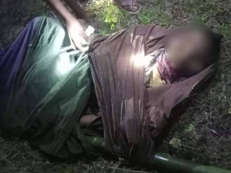 This photo was taken on January 20th 2024, in Bs--- village, Kya Inn Chaung village tract, Ta Naw Th’Ree Township, Mergui-Tavoy District. This photo shows a villager who was killed by the detonation of a mortar round previously shelled by the SAC, which had remained unexploded. The shell detonated while he was cleaning vegetation on his plantation: the villager accidentally hit the UXO that was under a bush. [Photo: Local villager]